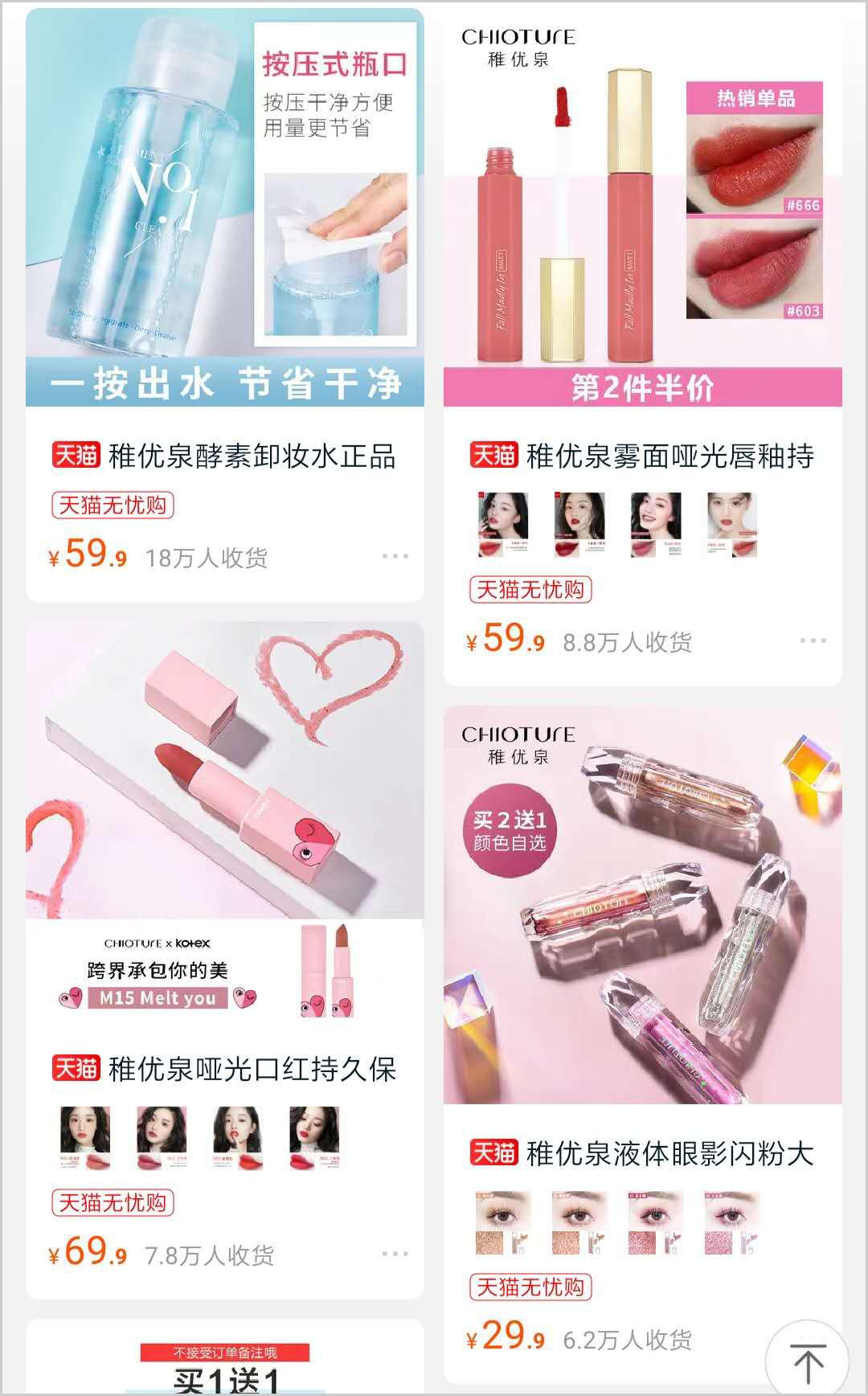 有聲音指出,在一眾中,稚優(yōu)泉和美康粉黛取得這樣不俗成績的共通之處在于:以極為優(yōu)廉的價(jià)格迅速拉攏人口基數(shù)占比較大的一般年輕女性群體,其中尤以尚無收入的女大學(xué)生群體和低線城市年輕女性群體為主。她們對(duì)化妝品的要求不會(huì)太專業(yè),護(hù)膚追求“佛系”簡單,雖然化妝品消費(fèi)占比基數(shù)大,但常常處于被一線品牌“忽視”的位置,“點(diǎn)滴流水匯之以江河”,借助“長尾效應(yīng)”取得品牌整體高額成交量也是情理之中的事了。