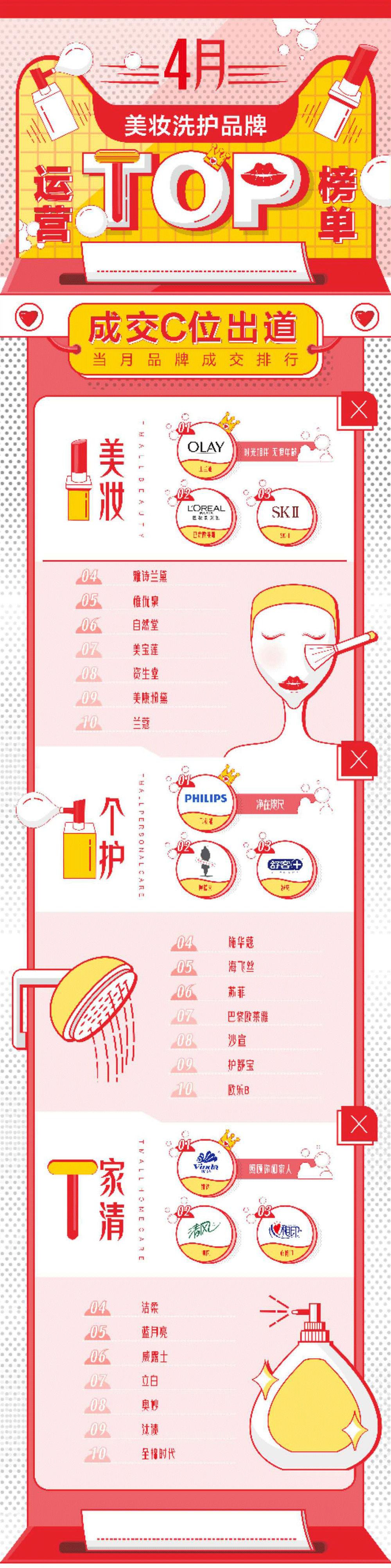 日前,天貓美妝發(fā)布了新的4月美妝洗護(hù)品牌TOP10榜單,OLAY、巴黎歐萊雅、SK-II等為人熟知的國際美妝毫無意外占據(jù)著前三的位置,榜單也出現(xiàn)了國貨翹楚自然堂,位列第6。令人頗感意外的是,國貨小眾品牌稚優(yōu)泉竟超越資生堂、蘭蔻等一干國際,躋身第5名,另一相對(duì)小眾的國貨品牌美康黛佳也出現(xiàn)在榜單中,取得第9的不俗成績。