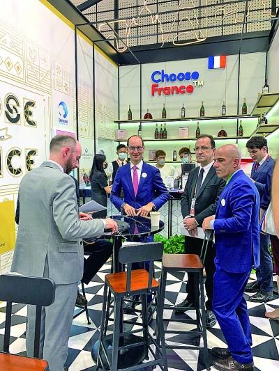7月26日,參展嘉賓在第二屆消博會(huì)法國館內(nèi)交流。光明日?qǐng)?bào)記者 曹元龍攝/光明圖片