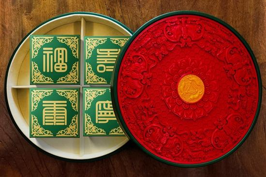 2021年的中秋節(jié),劉博聞做出了一件新的作品。作品是一個月餅盒,名為《三兔抱月圓盒》。圓盒采用雕漆工藝,其上通過機(jī)器雕刻有蓮花、祥云、蝙蝠、玉兔等圖案,畫面整體布局穩(wěn)重大方,顏色搭配巧妙而大膽。劉博聞介紹說,盒為圓形代表“團(tuán)圓”,盒上的五只蝙蝠寓意“五福臨門”,盒子以紅色為主色寓意“喜慶歡樂”,盒中央黃色圓月搭配三兔抱月寓意“天倫之樂,玉兔報喜”,盒內(nèi)四塊月餅組成方形,圓里有方,寓意“孔方為錢,四方來財”。劉博聞?wù)f,大多數(shù)人欣賞一件雕漆作品,一看雕工,二看寓意,過硬的手藝搭配上精心設(shè)計的寓意就能夠出好的作品,而在當(dāng)下更為重要的,是將作品的實用性與藝術(shù)性相結(jié)合。“這個盒子可以用來裝月餅,同時也具有儲物功能。既有觀賞性、藝術(shù)性,也有實用性。我認(rèn)為傳統(tǒng)工藝品既需要繼承傳統(tǒng)的技藝精髓,也要靈活使用先進(jìn)的技術(shù)和生產(chǎn)力來適應(yīng)當(dāng)今的社會發(fā)展,讓作品不僅僅可以用來看,也要能用。讓老百姓不僅喜歡,也要買得起?!?/p>