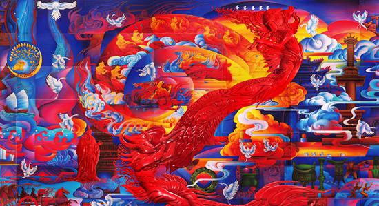 黃小群作品掐絲琺瑯壁畫《遠(yuǎn)古的聲音》。