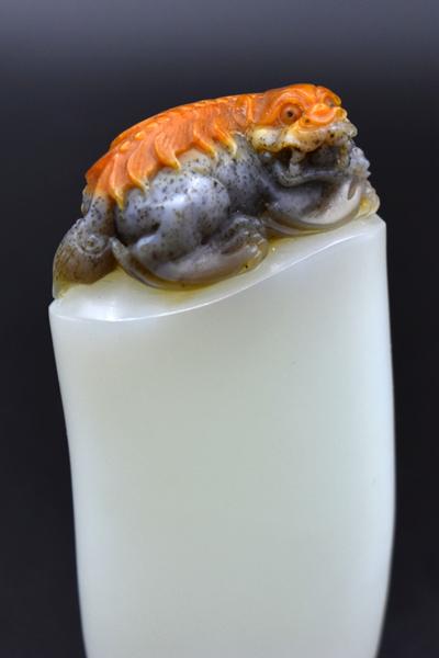 郭衛(wèi)軍玉雕作品《三色瑞獸手把件》。