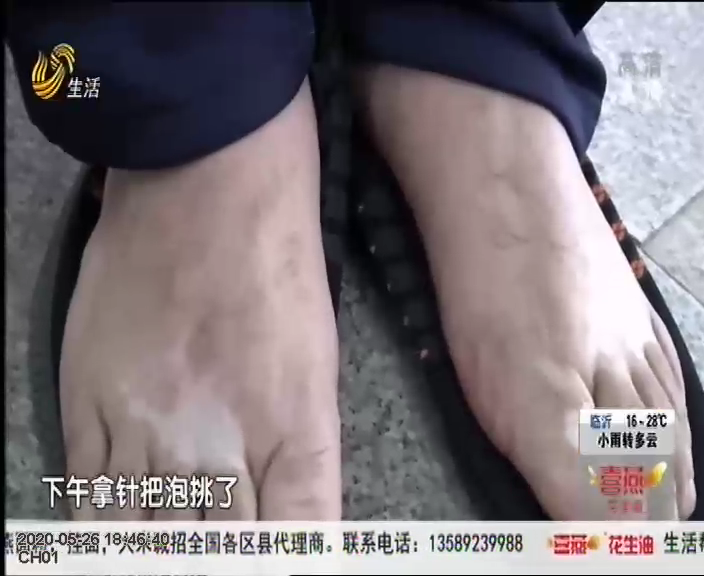 當(dāng)時(shí),明先生剛燒開的水不小心濺到了腳部,燙傷部位當(dāng)時(shí)就出現(xiàn)了膿皰,隨后明先生就用針挑破。