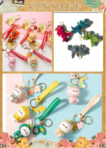 ▲掛件:鑰匙扣、卡通掛件、毛絨掛件等上百款產(chǎn)品。
