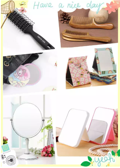 ▲鏡梳:歐式化妝鏡、臺(tái)鏡、折疊鏡、隨身鏡、木梳、卷梳、氣囊梳等上百款產(chǎn)品。