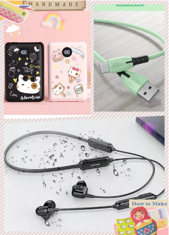 ▲手機(jī)配件:耳機(jī)、數(shù)據(jù)線、充電寶等上百款產(chǎn)品。