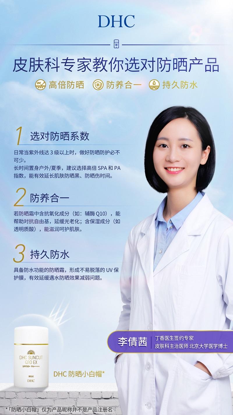 3月迎來(lái)了春天,萬(wàn)物復(fù)蘇的時(shí)節(jié)使人們更希望接近山林、海灘感受自然氣息,宅家許久的年輕人早已按耐不住對(duì)戶外運(yùn)動(dòng)和旅游出行的向往。在享受大自然的美好與春日的活力朝氣之際,烈日驕陽(yáng)卻總是不那么友好,常常用紫外線“關(guān)照”著我們的肌膚。而當(dāng)汗水遇到紫外線,即使涂抹了防曬霜,依舊會(huì)出現(xiàn)“防曬不見效”、“涂后依舊曬傷”、“油膜感重”、“涂抹后皮膚變得干燥”等諸多問題。今年DHC將攜手“丁香大實(shí)話”深度科普防曬誤區(qū)賣點(diǎn),特邀北京大學(xué)醫(yī)學(xué)博士皮膚科主治醫(yī)師——李倩茜,為大家補(bǔ)習(xí)防曬冷知識(shí)!讓你在防曬的路上不再“踩坑”。