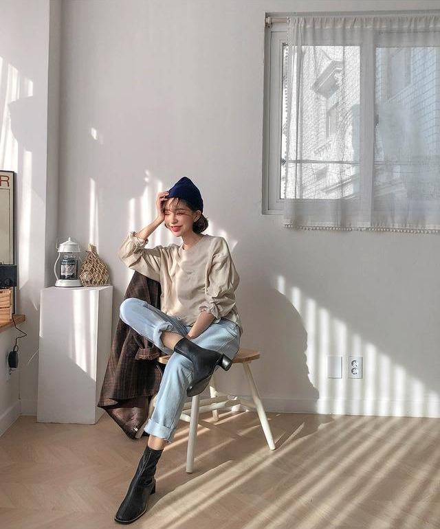 搭配帽T就是match??!這樣的輕松打扮在韓國(guó)可是隨處可見(jiàn)哦!