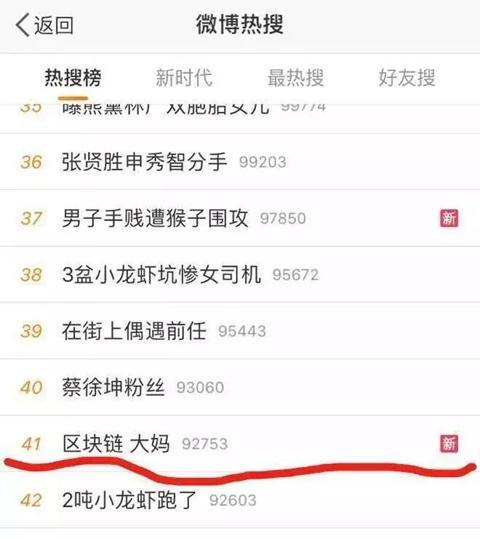 甚至在微博熱搜榜,“區(qū)塊鏈大媽”成為排名41的新晉熱搜。