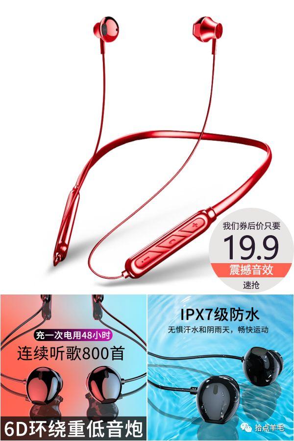 8.掛脖式無線藍牙防水耳機 ¥19.9