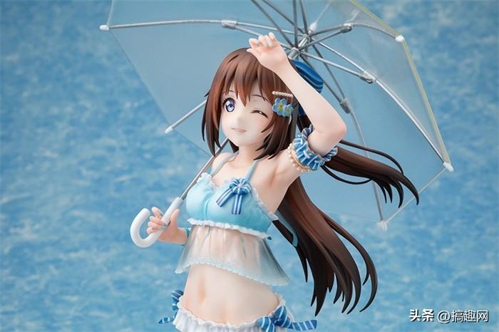 櫻坂雫 臺(tái)場泳裝少女Ver. 1/7手辦全高約為27厘米。虹咲學(xué)園一年級生,認(rèn)真可靠的優(yōu)等生,演劇部所屬部員櫻坂雫以“2C=がろあ”所繪制的泳裝造型進(jìn)行立體化。黑色的長發(fā),姣好的面容搭配眨眼的表情,單手遮陽十分可愛。水藍(lán)色的泳裝上衣有著半透明的下擺,下裝搭配著藍(lán)白色緞帶蝴蝶結(jié),一雙長腿搭配沙灘涼鞋十分吸引人們目光。右手拿著半透明的遮陽傘,一沙灘為主題的底座展現(xiàn)著夏天的主題,人偶手中的遮陽傘也采用了可拆卸設(shè)計(jì)。