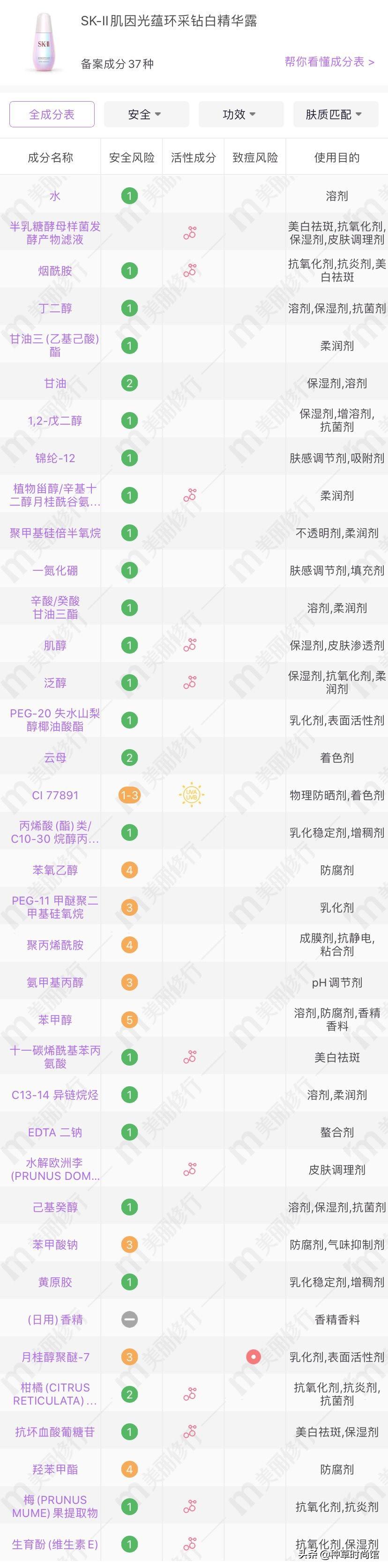 SK2成分表中除了的水,之后就是Pitera(神仙水的主要成分)和煙酰胺,能激活細(xì)胞再生、促進(jìn)新陳代謝,讓皮膚提亮、光滑。