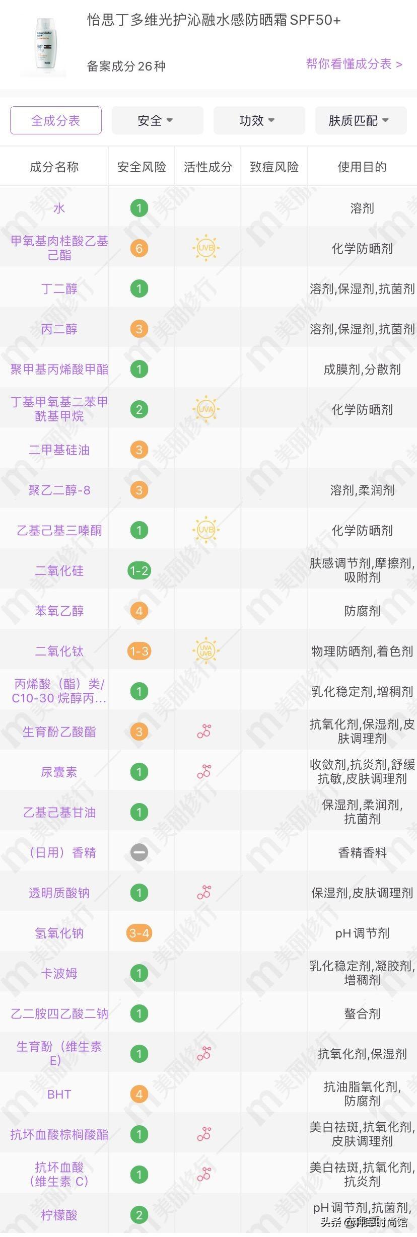 馬上查了一下它的成分,它是一款物化結(jié)合的防曬霜,添加了腺苷、煙酰胺、積雪草這些成分,關(guān)鍵是 沒(méi)色素沒(méi)酒精 !