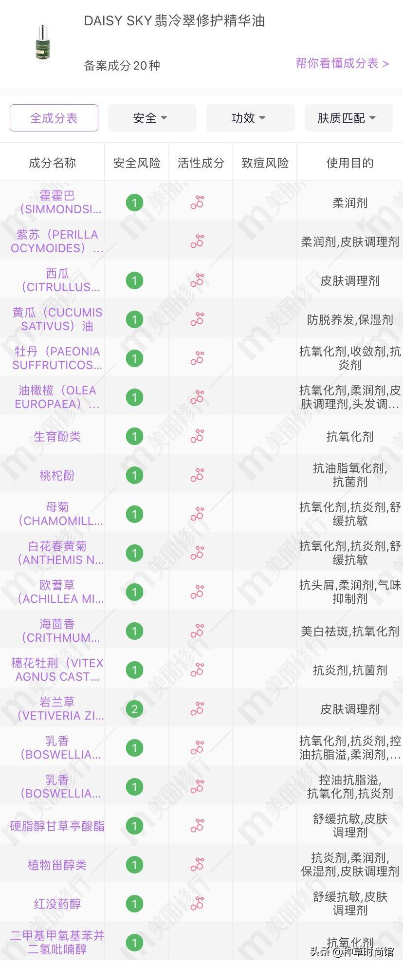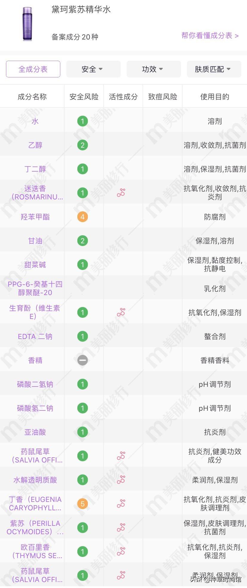 黛珂紫蘇水主要以抗炎保濕為主,抗氧化為輔,使用了迷迭香、歐百里香、鼠尾草、丁香花提取物復(fù)配,來(lái)抑制促發(fā)炎因子的釋放,舒緩消炎的果很Nice(對(duì)痘痘果一級(jí)棒,親測(cè)