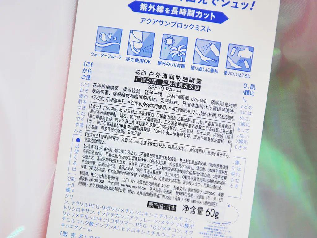 「花印戶外清潤(rùn)防曬噴霧」需要在使用前搖勻,
