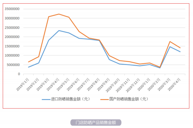美得得服務(wù)的1.3萬家化妝品門店的數(shù)據(jù)則顯示,今年1-4月門店防曬產(chǎn)品銷售額同比大幅下滑41%。國產(chǎn)防曬銷售金額要高于進(jìn)口防曬,旺季時(shí)兩者差距更加。