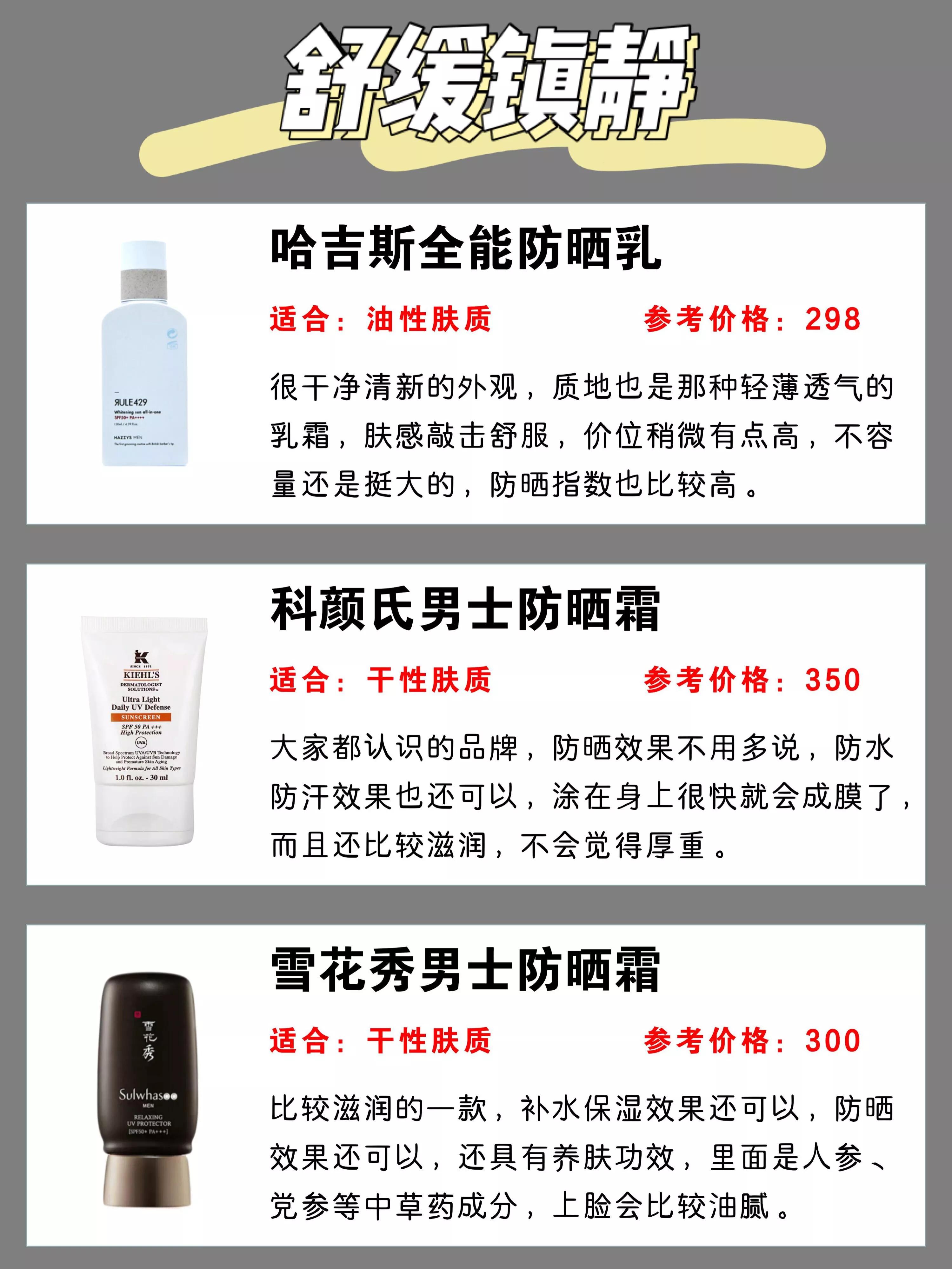 今天整理了一份男士防曬霜測評合集
