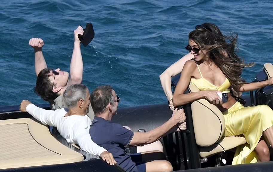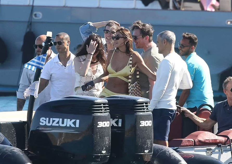 這一行人相當悠閑地享受著度假時光,先是在餐廳享用了一頓美餐,接著又乘坐私人游船游覽了風景如畫的島嶼。