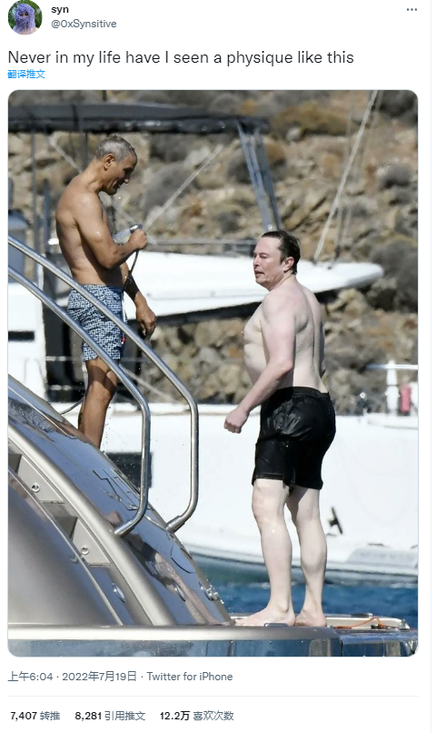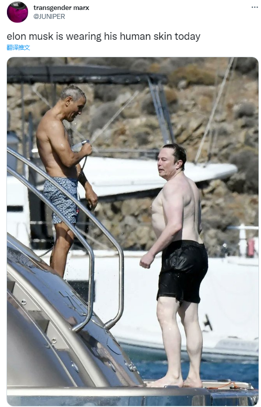 “埃隆馬斯克的身體太白了,他看起來像是伏地魔把衣服脫掉之后的樣子。”