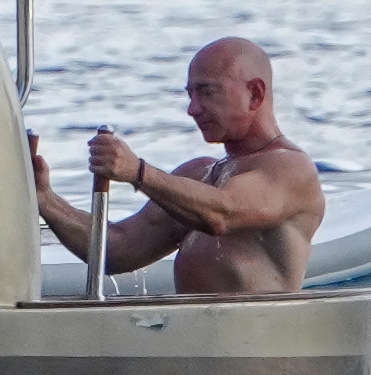 多少次游艇度假,貝佐斯都盡情地展示了自己的鍛煉成果。
