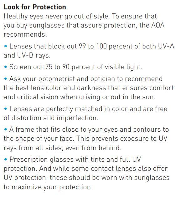 -02-怎么給寶寶選太陽鏡?為此我還真的查了一下AAP(美國兒科學會)、AAO(美國眼科學會)和美國視覺協(xié)會(AOA),前兩者比較籠統(tǒng)只對太陽眼睛的遮擋率做了建議,比較詳細的是AOA: