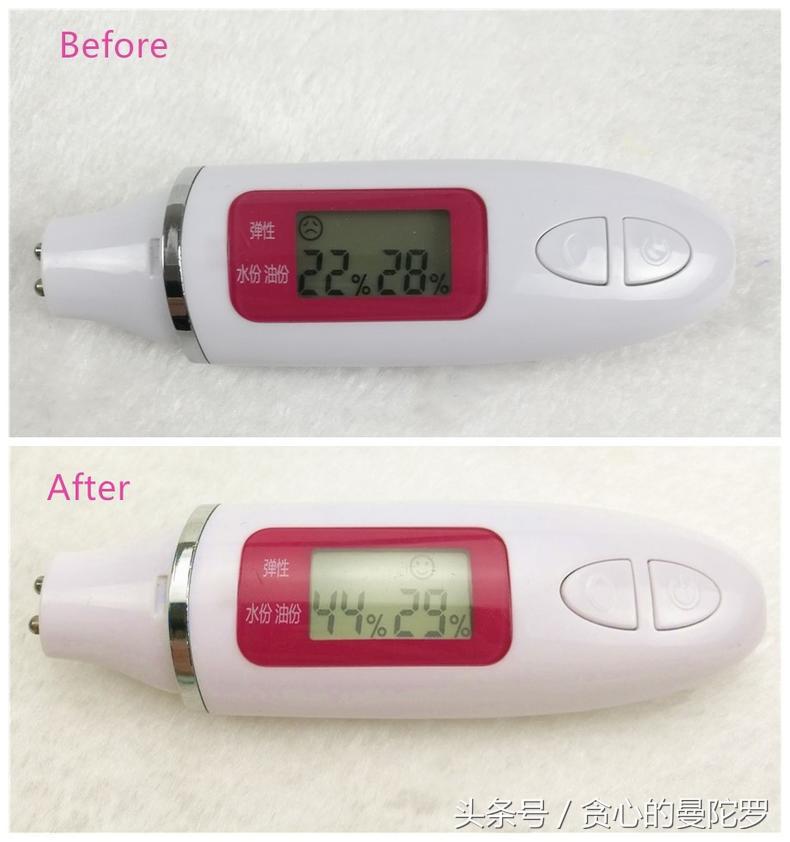 由于防曬霜中還添加了玻尿酸保濕成分與柑橘萃取精華,因此加強了保濕果,涂抹時可釋放大量水分子。具體如何還是拿水分測試儀來測試一下更直觀。