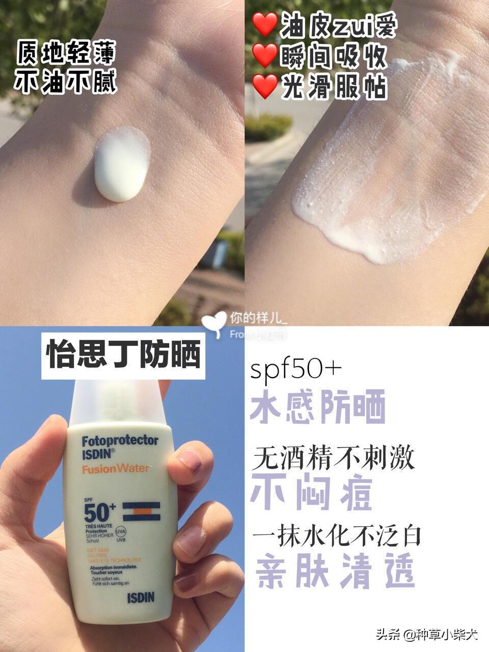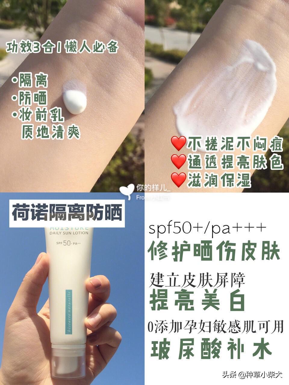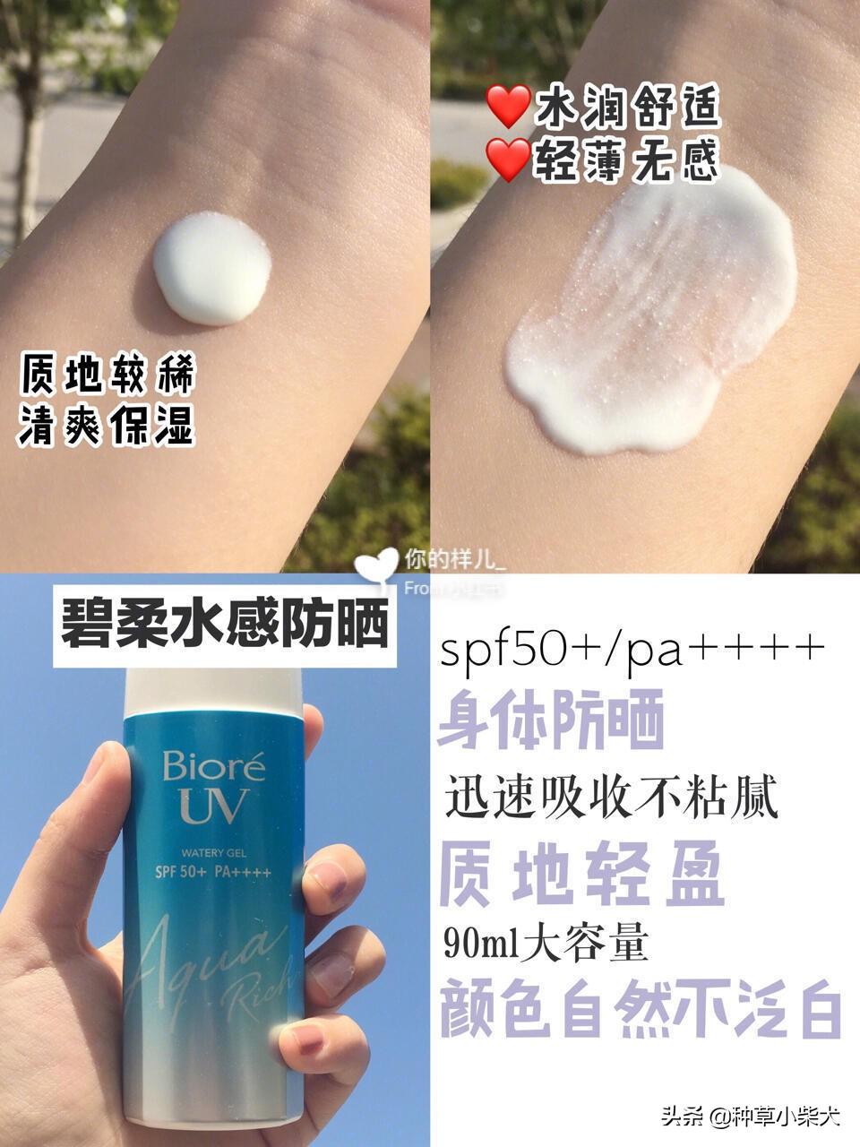 這款防曬主要就是便宜,各方面都做得比較好,但都不是好的。但是性價比很高,而且SPF倍數(shù)到了130。輕輕推開就會在皮膚表面形成一層隱形的保護膜,是那種水潤自然的使用感,不會對皮膚造成負擔。清爽度比較好,但是防水度比較一般。這款也SPF 30的,可以日常用。