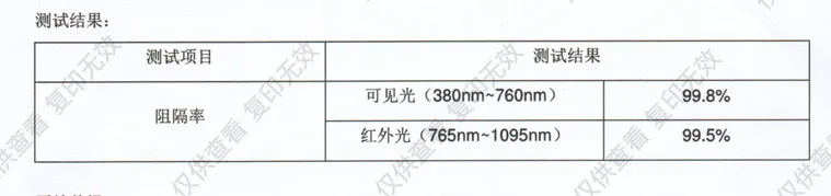它對紅外線阻隔率達到了99.5%,對可見光的阻隔率高達99.8%,比坐在屋里都。