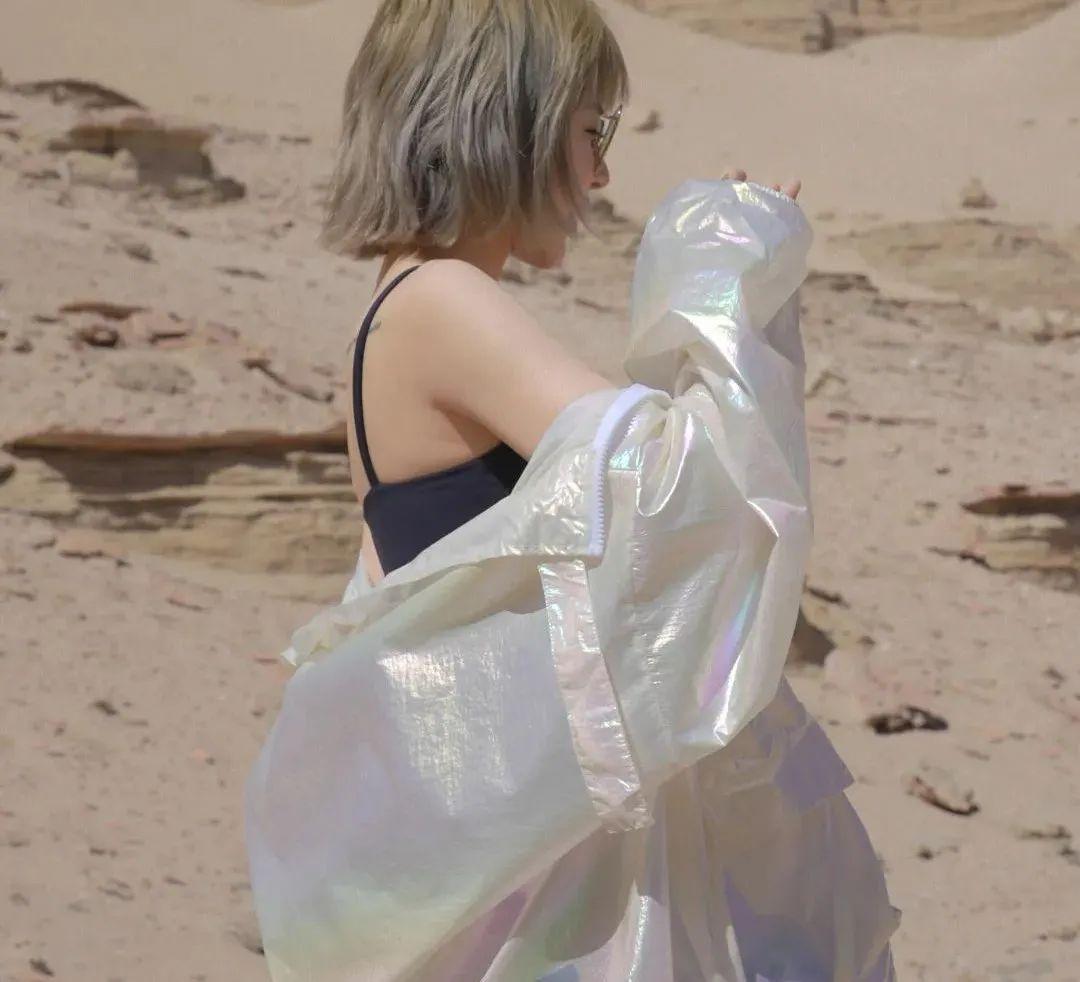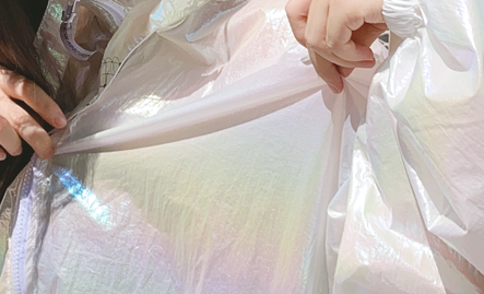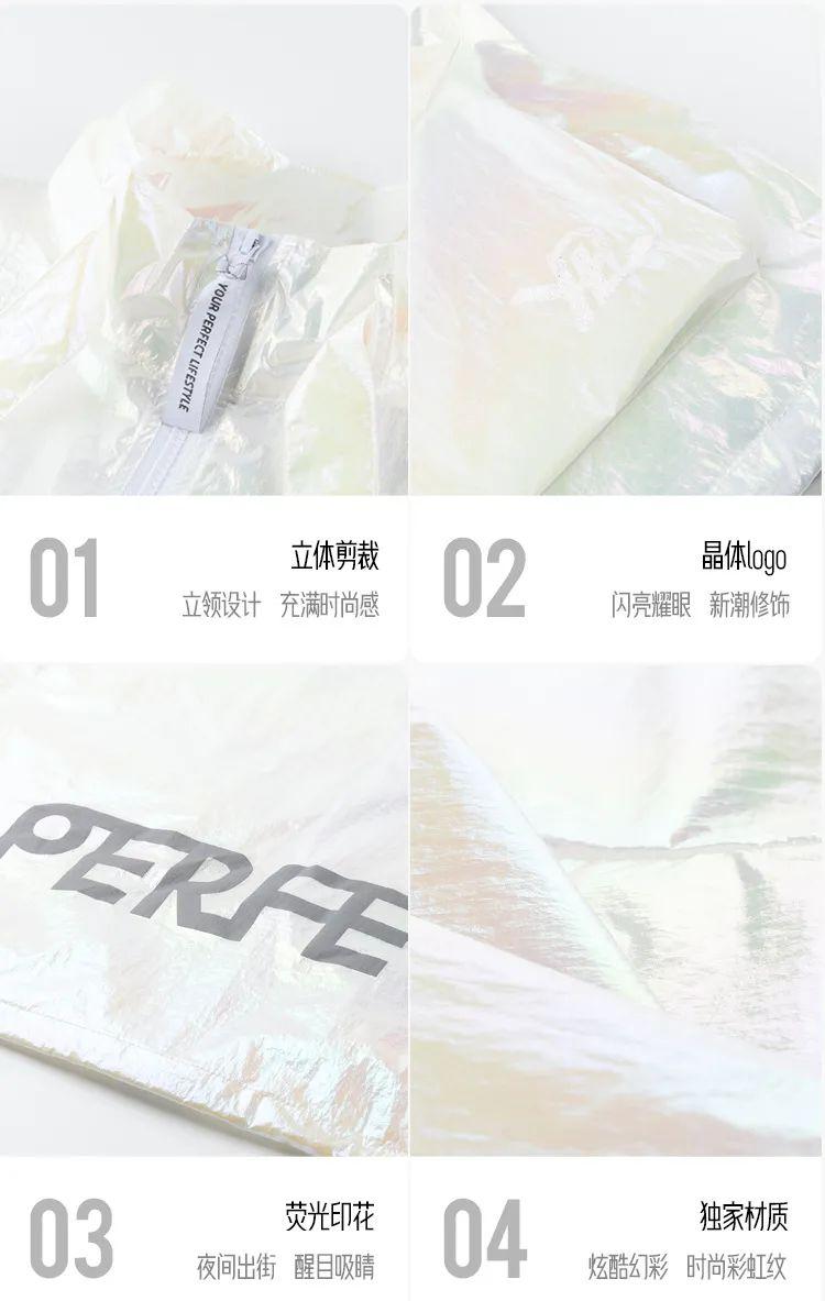 表層復(fù)合彩虹紋面料,可以反射光線,同時在陽光下可折射出絢麗光芒,讓你在人群中炫酷吸睛。