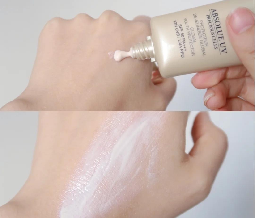 前面的幾款都是適合戶外的高倍防曬,而新碧的這一款防曬就比較適合日常通勤,可以說(shuō)是平價(jià)防曬中的天花板了。稀薄水潤(rùn)的質(zhì)地,有微微增白提亮的果,- -推開就化成水吸收了,后續(xù)也不會(huì)拔干。一定要等成膜后再.上底妝,不然可能加速脫妝哦!