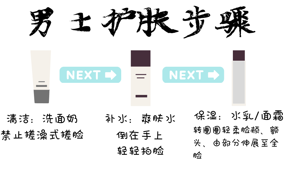 產(chǎn)品介紹完了那就康康【護(hù)膚步驟】吧~本人覺得男生護(hù)膚沒有多復(fù)雜多細(xì)致的步驟,不像女孩子這里推推揉揉那里刮一刮。
