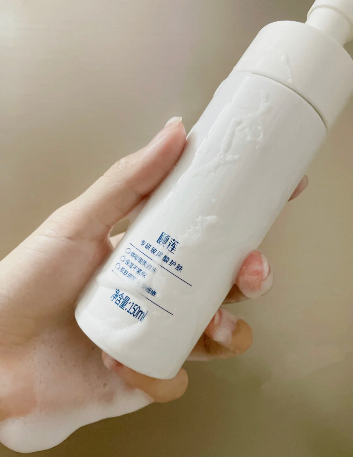 4、頤蓮氨基酸泡沫潔面懶人福音,無需揉搓按壓出來就是豐富有細密的泡沫。