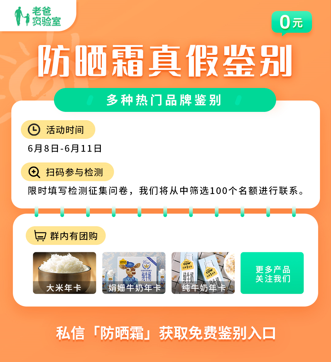 如果粉絲朋友們擔(dān)心自己用的防曬可能不是,我們「老爸實驗室」為大家準(zhǔn)備了「防曬霜真假鑒別」活動,可以把它寄過來,我們免費為大家檢測,檢測之后會給大家再寄回去。