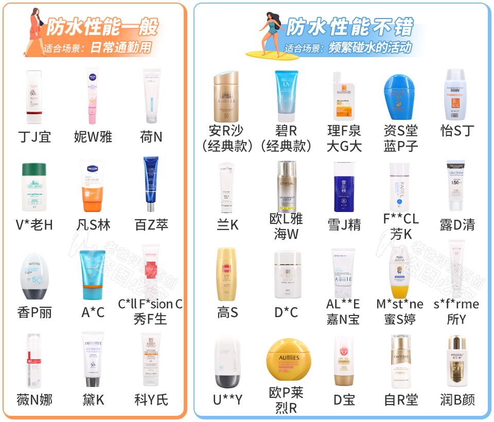 三、防水性能解決了防曬好不好的問題,再來看看這些防曬霜的防水果如何。畢竟大家在夏天可能會瘋狂出汗、下水游泳、以及很多不小心打濕自己的情況。