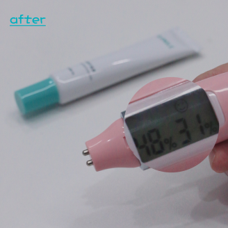 測(cè)評(píng)方法:使用肌膚水分測(cè)試儀測(cè)量使用藍(lán)沫爾冰肌修護(hù)晶露前、后的肌膚水分值。從水分值的變化,判斷冰肌修護(hù)晶露的保濕程度。