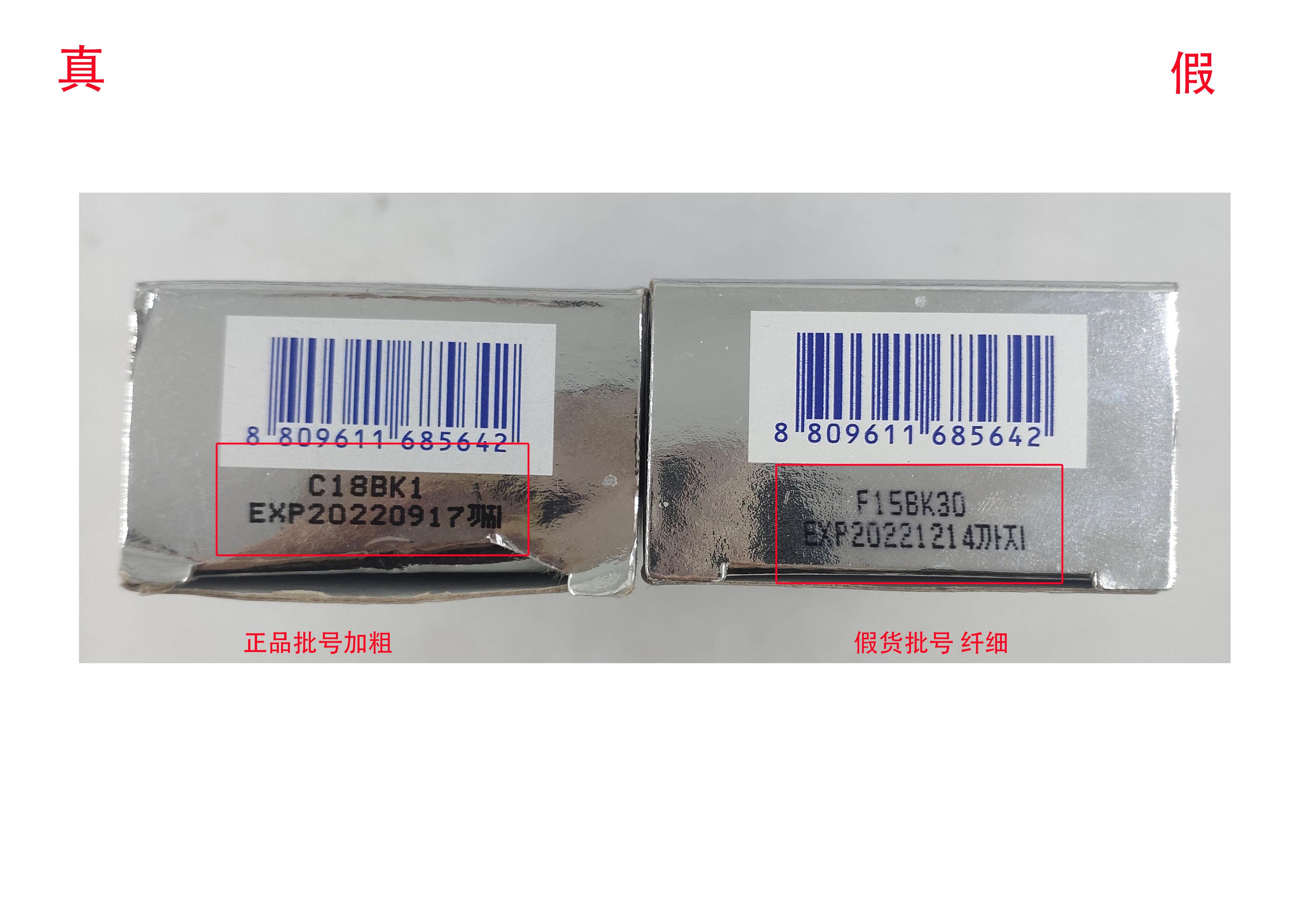 假貨外包裝底面批號(hào)字體纖細(xì)