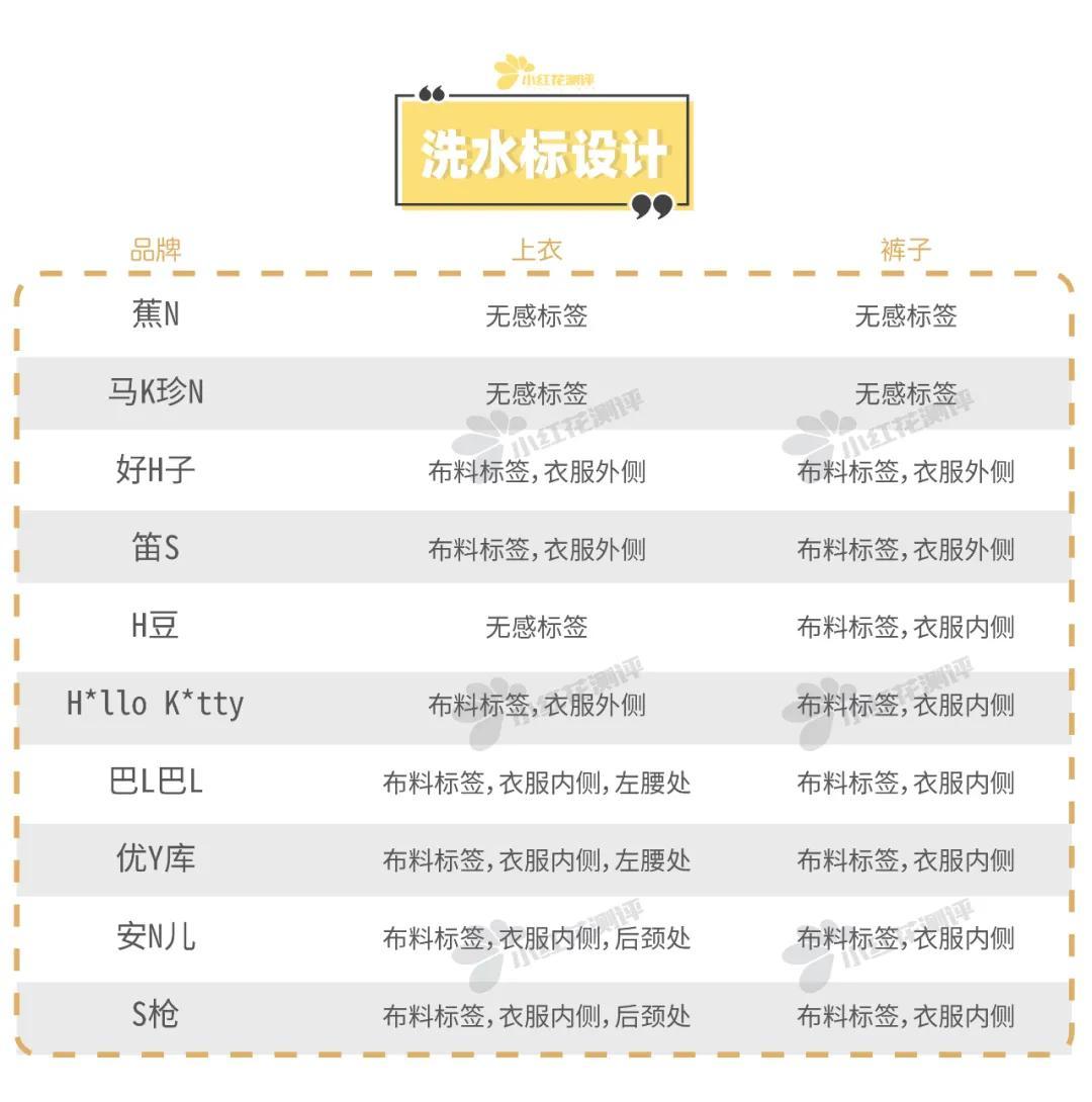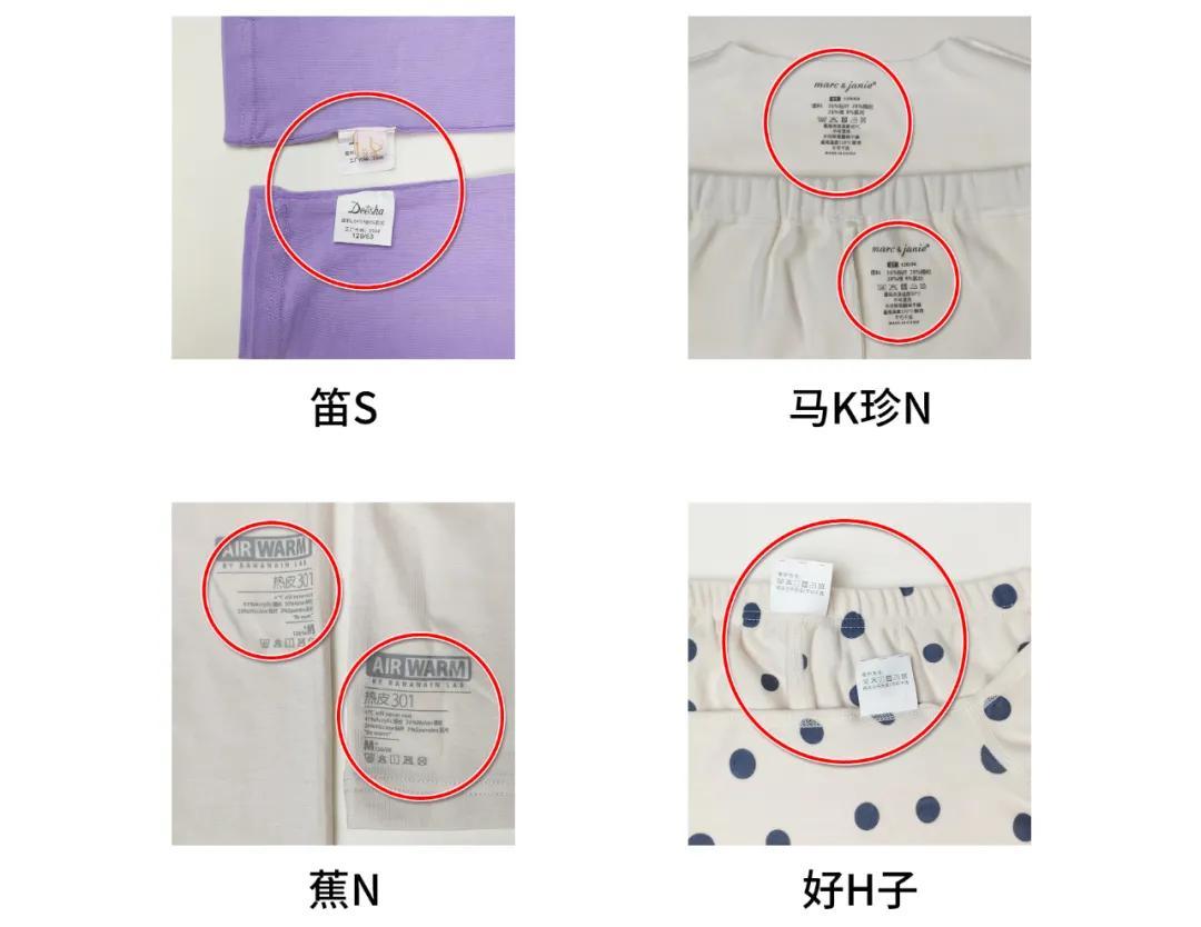 2.洗水標(biāo)影響穿著舒適的產(chǎn)品:巴L巴L、優(yōu)Y庫、安N兒、S槍、H*llo K*tty、H豆。