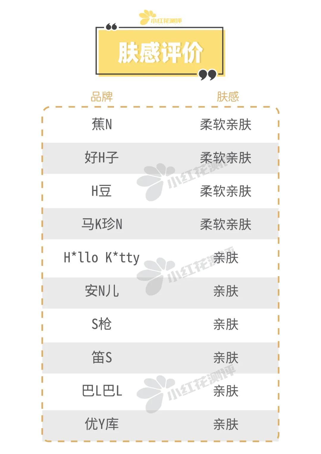 蕉N、好H子、H豆、馬K珍N柔軟親膚,舒適性較好;其余6款由于含棉量較高,柔軟度相對較差。