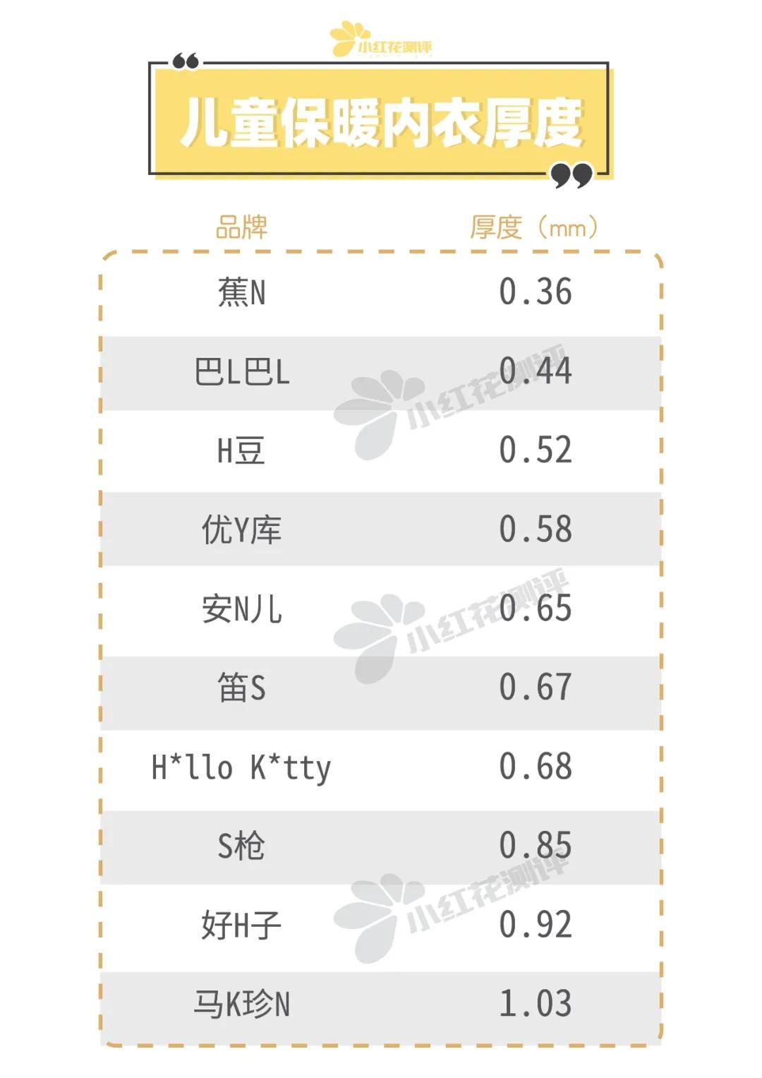 10款兒童保暖內(nèi)衣的厚薄程度如下: