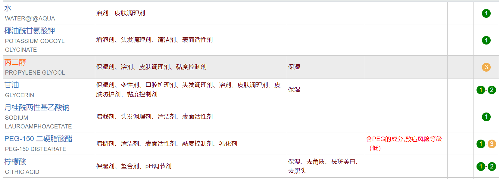 成分中不含香精、色素、激素、酒精、皂基等五大易敏感成分,干凈溫和,并且前幾位的成分以保濕劑為主,清潔力雖然會弱一些,但勝在溫和。