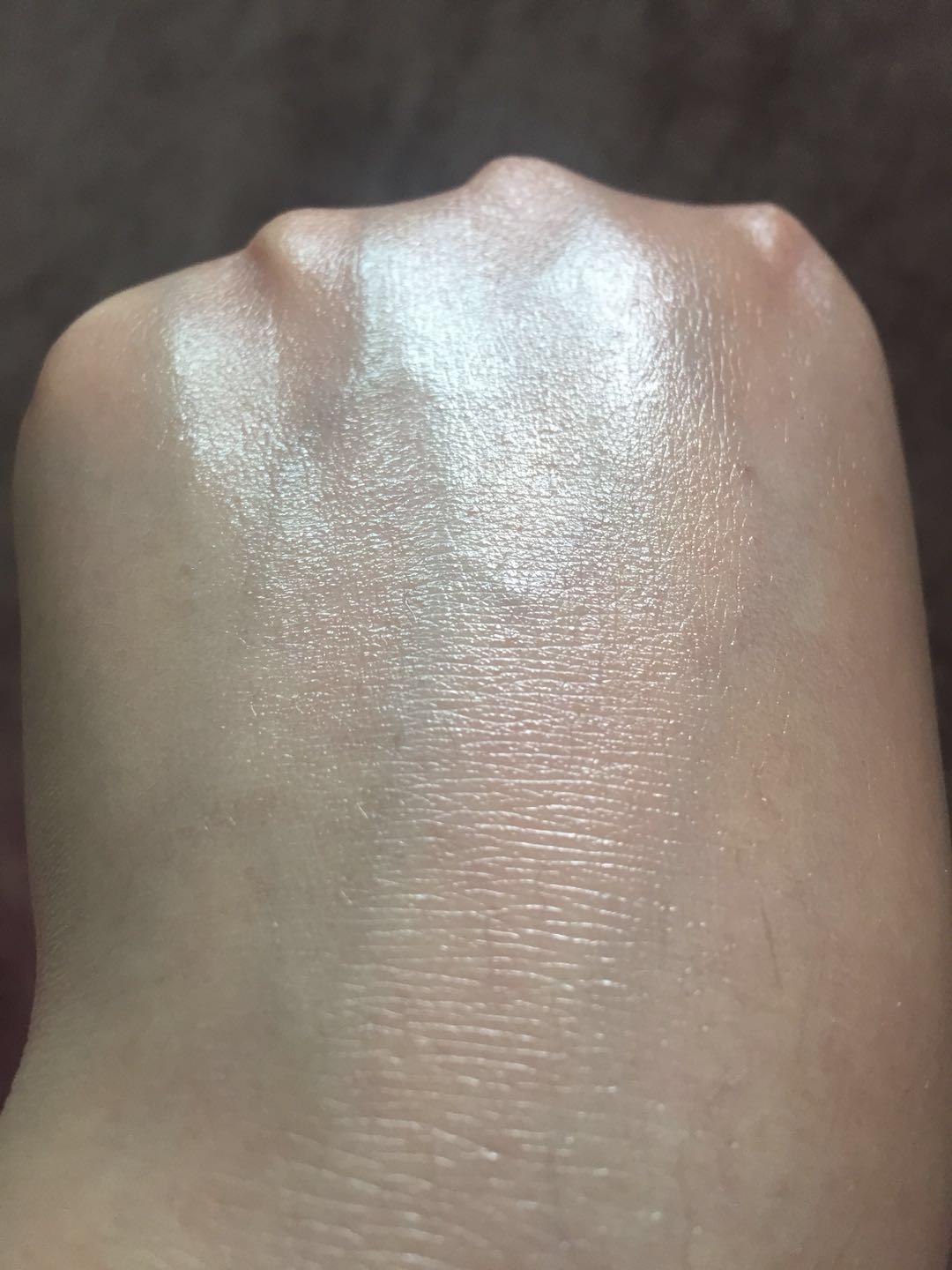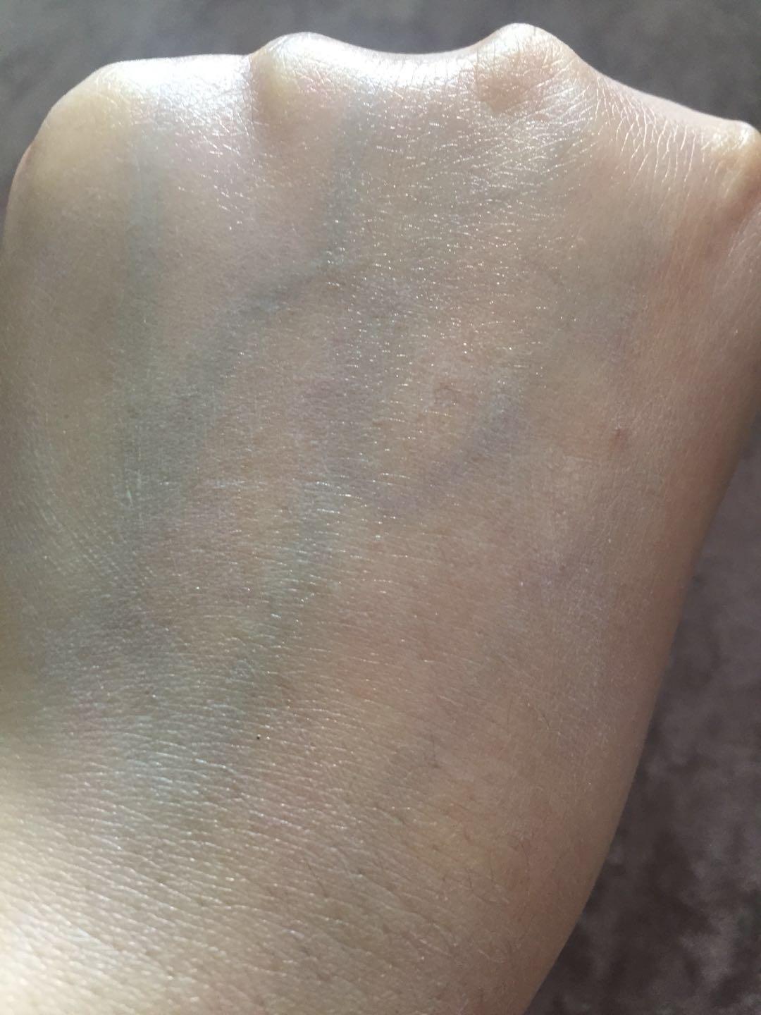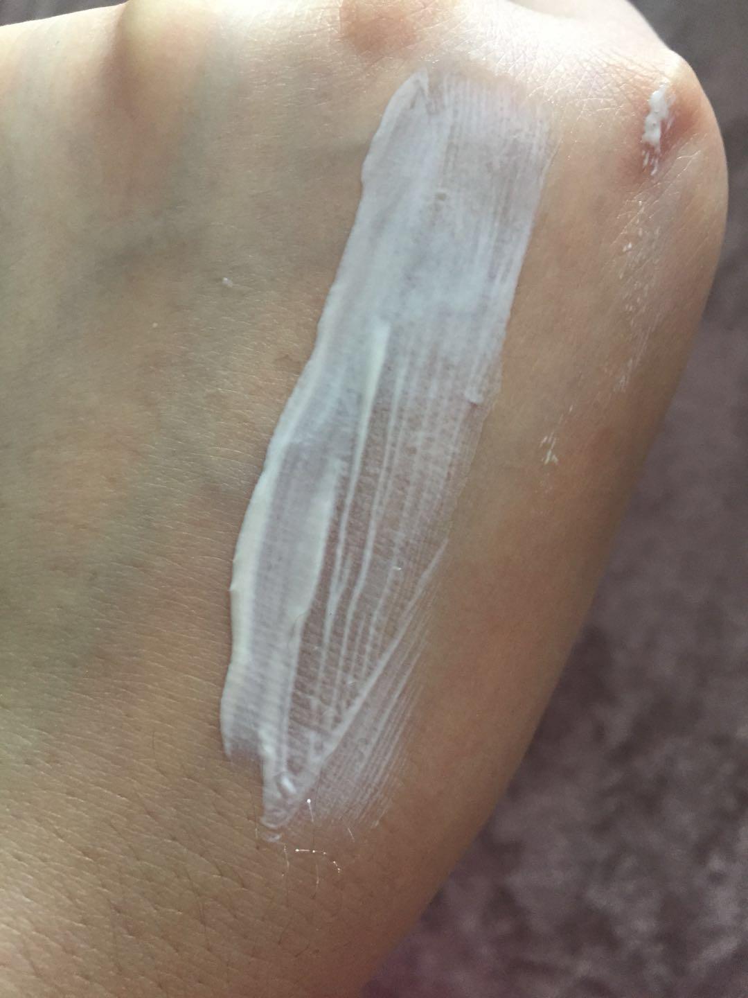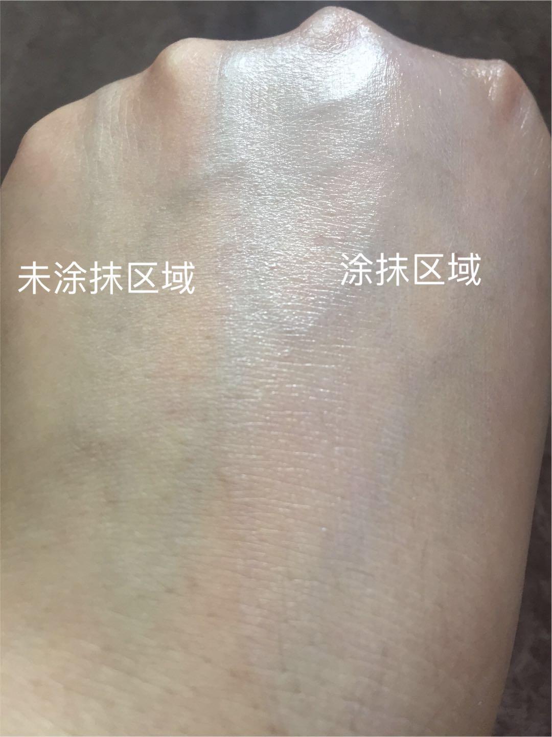推開后,不泛白,很好推,立馬成膜,成膜后,皮膚表層會形成一層油膜,但不厚重,不悶
