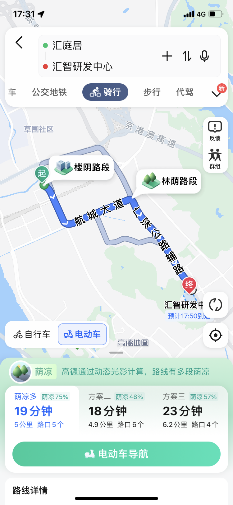 如今,當(dāng)用戶使用高德地圖進(jìn)行騎行或步行路線規(guī)劃時(shí),就能在APP中看到適時(shí)出現(xiàn)的、包含“林蔭”和“樓陰”等多種路段的蔭涼路線。