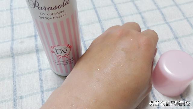 這款噴霧噴出來是無(wú)色的,冰冰涼涼。如果噴得均勻的話,皮膚像是蓋了一層水晶,通透無(wú)色,閃閃發(fā)光。