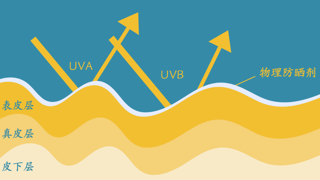 物理防曬劑又稱無機防曬劑,因為它本身片狀原子微粒的特點,可以達到反射紫外線的作用,簡單來講它就像一個反光板,光線照射在涂抹物理防曬劑的肌膚表面會自行反彈出去。
