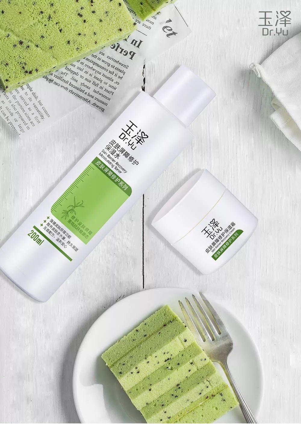 產品一共有兩個系列,一個是針對敏感肌的綠色屏障修復系列,另一個是針對痤瘡的藍色清痘調護系列,都不添加香精、易致敏防腐劑等。