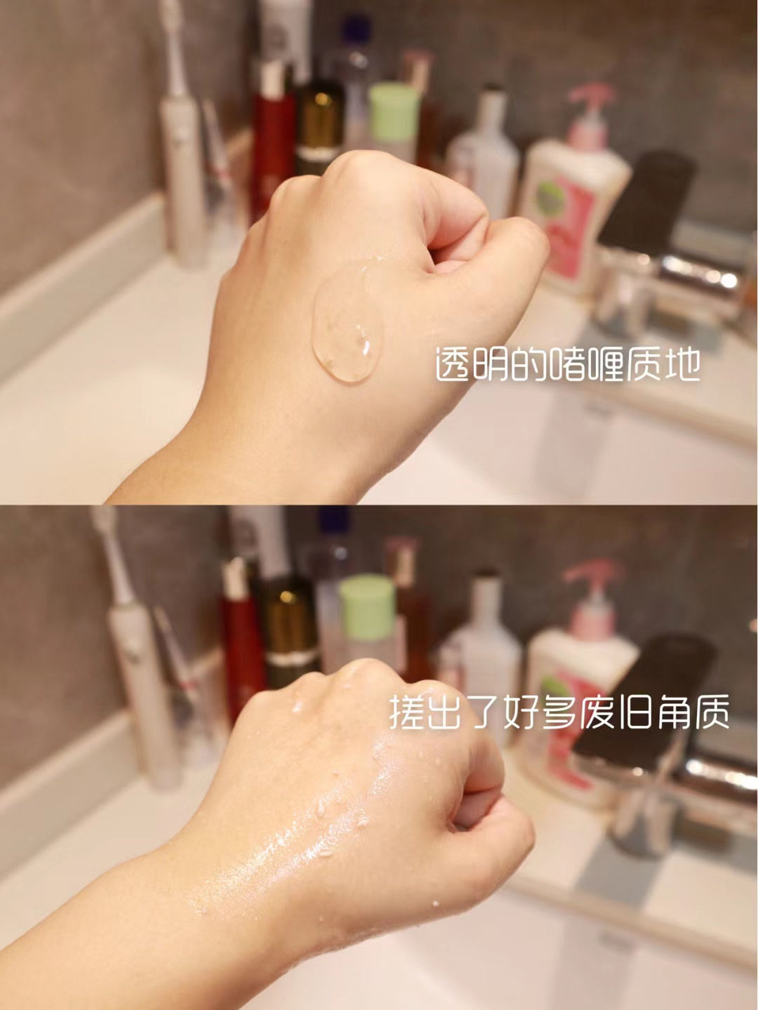 可以重點按摩一下手背,手肘,膝蓋,腳跟,這種地方容易沉淀黑色素,揉搓一會會看到一些角質(zhì)出現(xiàn),但是不用擔(dān)心皮膚會干,洗完只會更保濕,又嫩又滑,堅持用是可以改良黑色素沉積的。