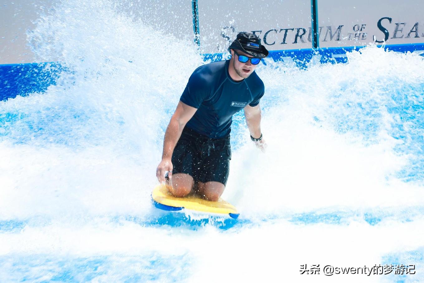 除此之外,甲板上還有個(gè)12米長的模擬沖浪器,沖浪本身,就是具有挑戰(zhàn)的驚險(xiǎn)運(yùn)動(dòng),在極速奔騰的12米長造浪模擬器上挑戰(zhàn)沖浪的極限,在每一次和海浪的搏擊中獲得快樂,想想都是驚險(xiǎn)又刺激!