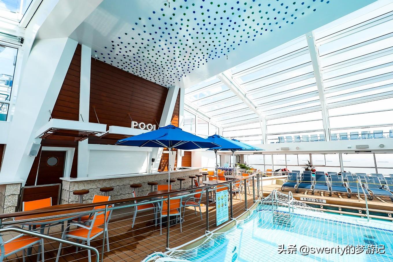 當(dāng)然泳池也是重要的一趴,都說游輪上必有泳池,當(dāng)你在游輪上瘋玩了一天,沒有什么比在甲板上游一個(gè)泳更爽的事情啦~