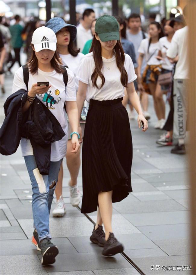 白色T恤配黑色半身裙,悄悄的帶你玩轉(zhuǎn)夏日的混搭風(fēng)。配上一雙休閑的黑色運動鞋,逛街通勤都很時髦。