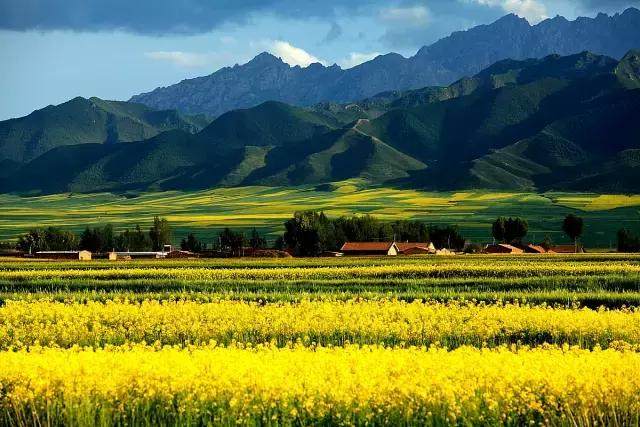 扁都口是古代絲綢之路的南路,夏季的時候漫山遍野都是油菜花,處處洋溢著清新的花香。金黃色的油菜花田、散落的白色氈房,藍(lán)天白云下,呈現(xiàn)一幅生機盎然、幸福安樂的美好圖卷。